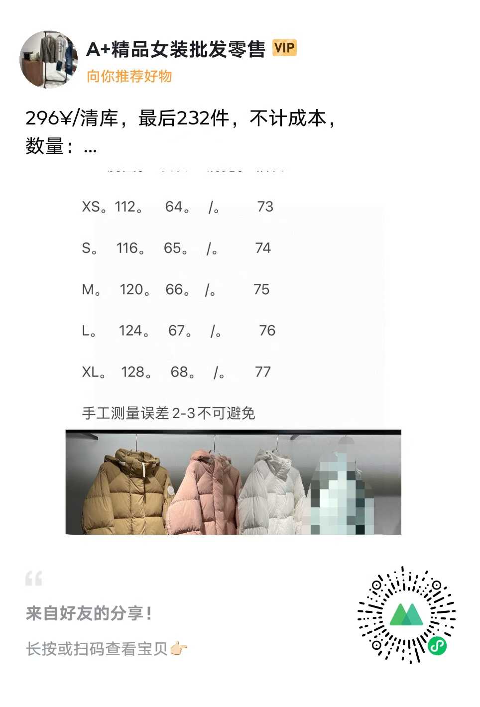 296¥/清库,最后232件,不计成本,