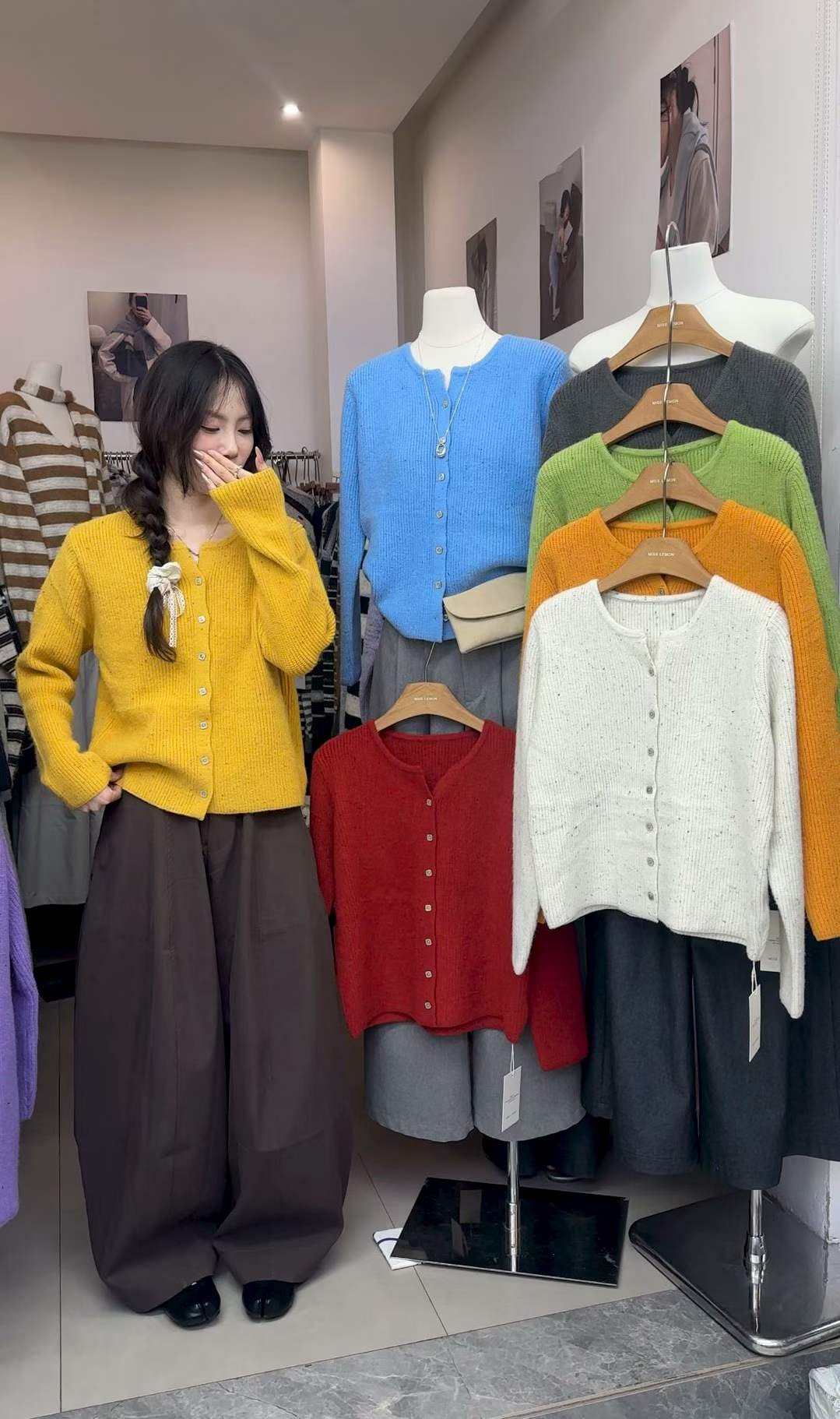 | 6245# 韩系剪刀口设计感彩点毛衣外套-???? |