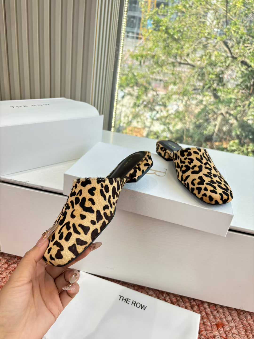 鞋面:开边珠牛皮/豹纹马毛