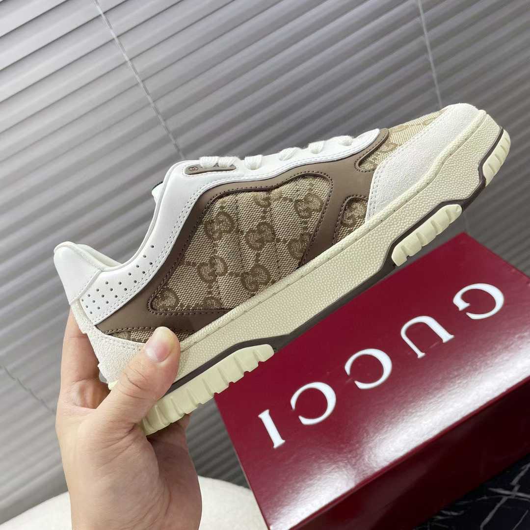 头层牛皮面料(穿孔,老花布,菱格工艺),4cm原版双色厚底有Gucci Logo,经典gucci织带/刺绣字母Logo……