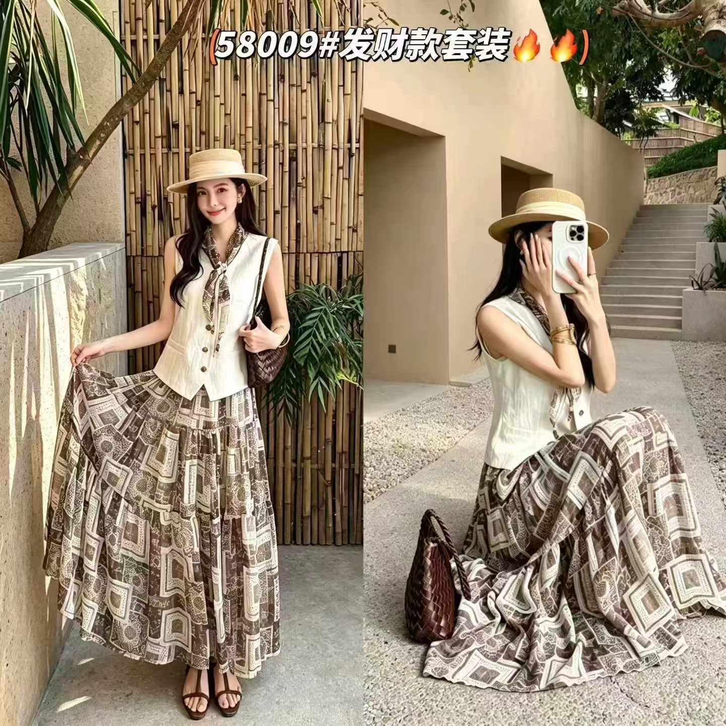 | 58009# 爆款老钱风度假感套装???????? |